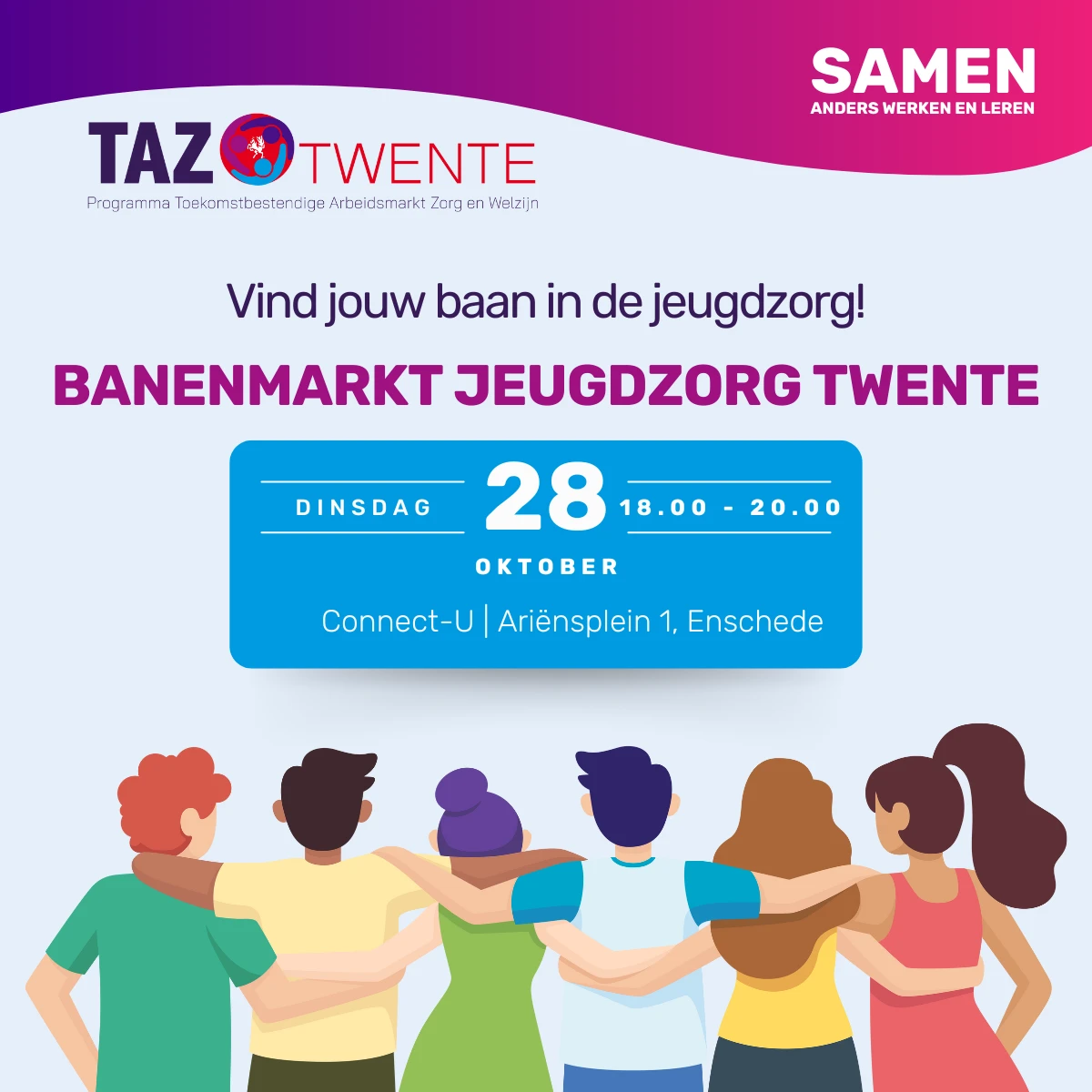 Op dinsdag 28 oktober vindt de Banenmarkt Jeugdzorg Twente plaats bij Connect-U in Enschede.